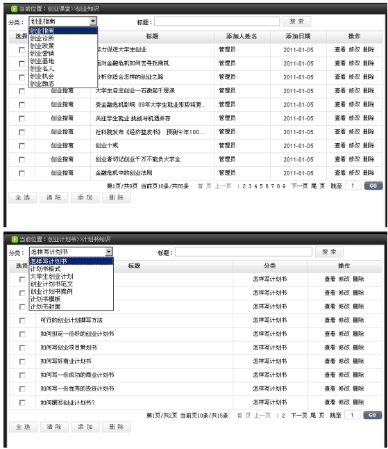 2、包含創(chuang)業(ye)(ye)(ye)(ye)理論知識(shi)的學習和創(chuang)業(ye)(ye)(ye)(ye)實戰(zhan)訓練。創(chuang)業(ye)(ye)(ye)(ye)理論知識(shi)包括測(ce)評系統、創(chuang)業(ye)(ye)(ye)(ye)課堂(tang)、創(chuang)業(ye)(ye)(ye)(ye)講談、創(chuang)業(ye)(ye)(ye)(ye)命(ming)題、創(chuang)業(ye)(ye)(ye)(ye)計劃書、法規知識(shi)、網上創(chuang)業(ye)(ye)(ye)(ye)、創(chuang)業(ye)(ye)(ye)(ye)準備(bei)、創(chuang)業(ye)(ye)(ye)(ye)論壇。創(chuang)業(ye)(ye)(ye)(ye)實戰(zhan)訓練包含選擇行業(ye)(ye)(ye)(ye)、注冊(ce)公司、人員招聘(pin)、產品戰(zhan)略策劃、產品生產、渠(qu)道銷(xiao)(xiao)售、促銷(xiao)(xiao)、備(bei)貨運(yun)送(song)等內容。