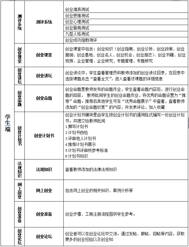 關(guan)鍵詞(ci):大學(xue)生(sheng)創業模擬實訓實戰教學(xue)平臺 大學(xue)生(sheng)創業實訓教學(xue)軟件 大學(xue)生(sheng)創業實訓教學(xue)系(xi)統 大學(xue)生(sheng)創業實訓室解決方案